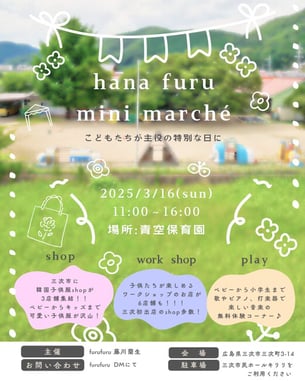 Furufuru藤川蘭生さん主催 ハナフル・ミニマルシェにて音楽体験コーナーを担当。参加無料。